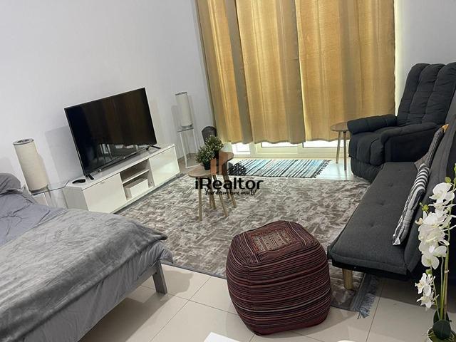 This cozy studio features a combined living/bedroom area, a fully equipped kitchen, a modern bathroom, and a private balcony for added relaxation.